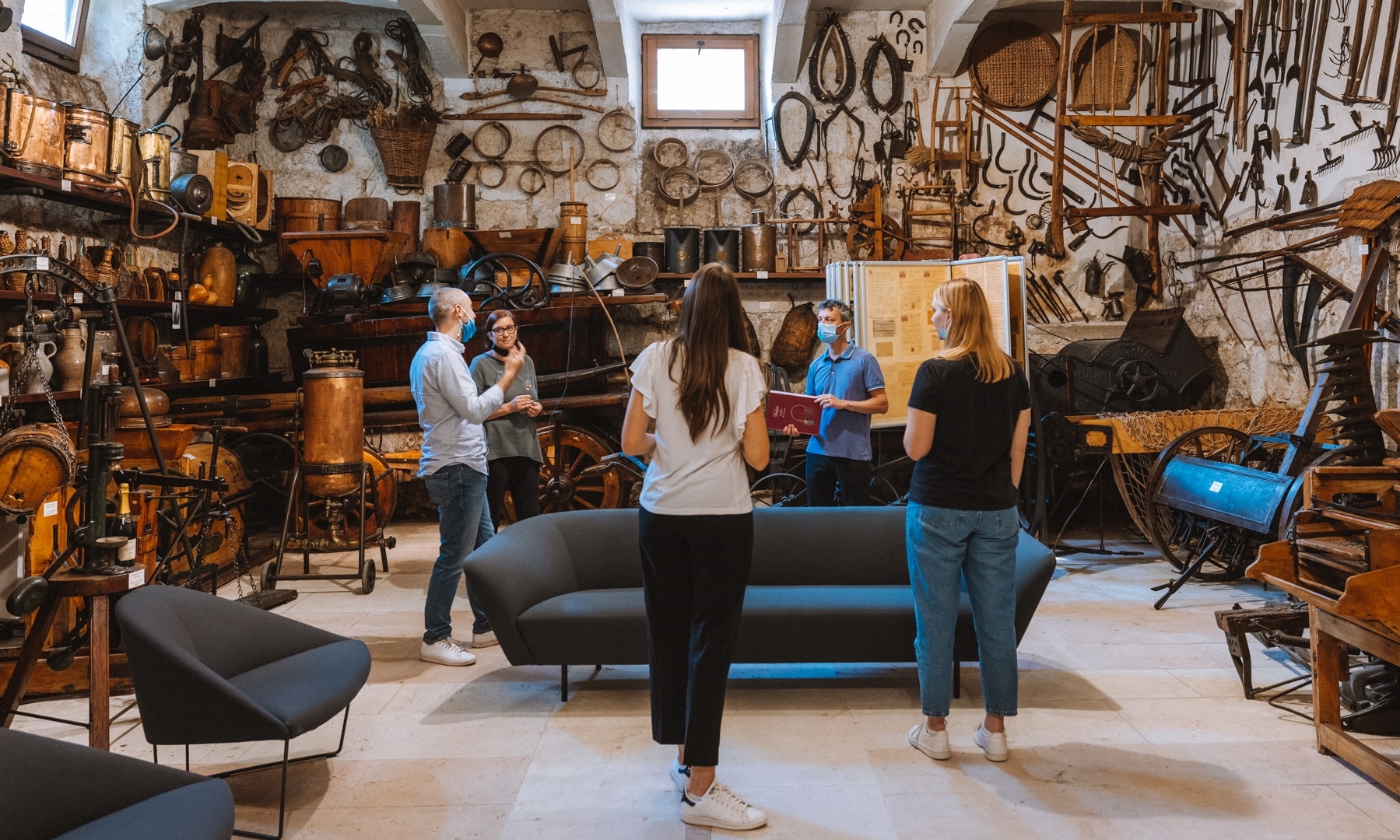 Die Tour beginnt mit der Familiengeschichte, Brennereien seit sechs Generationen, und führt dann in die Brennerei, die je nach Jahreszeit in Betrieb ist oder ausgeschaltet wird, wo erklärt wird, was der Grappa ist, die traditionelle Trentiner Methode und die besondere handwerkliche Methode „de Varda“. Der aufregendste Moment wird dann der Abstieg in den Fasskeller sein, wo man über Alterung und Veredelungstechniken sprechen wird, und im Familienmuseum „Cose di Casa“, einem einzigartigen Raum, in dem mehr als 1600 antike Werkzeuge aufbewahrt werden, die im Laufe der Jahre von der Familie Dolzan verwendet wurden. Die ganze Erfahrung wird von einer wandernden Verkostung von 5 Grappa begleitet, mit einem besonderen Fokus auf die Düfte und die organoleptischen Besonderheiten dieses Produkts von großem Wert.