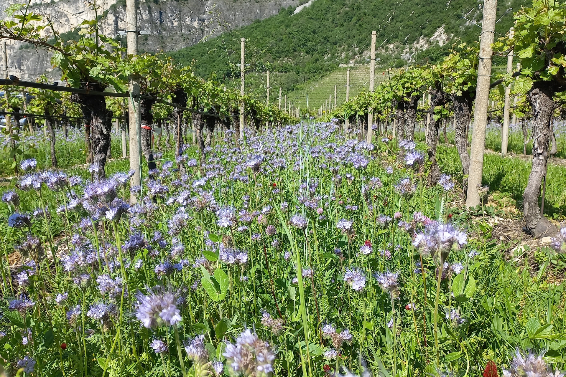 This practice is called green manuring and involves growing specific plants that improve soil fertility and structure: it adds organic matter, nitrogen, and helps combat erosion and weeds. In vineyards, it keeps the soil healthy and productive.