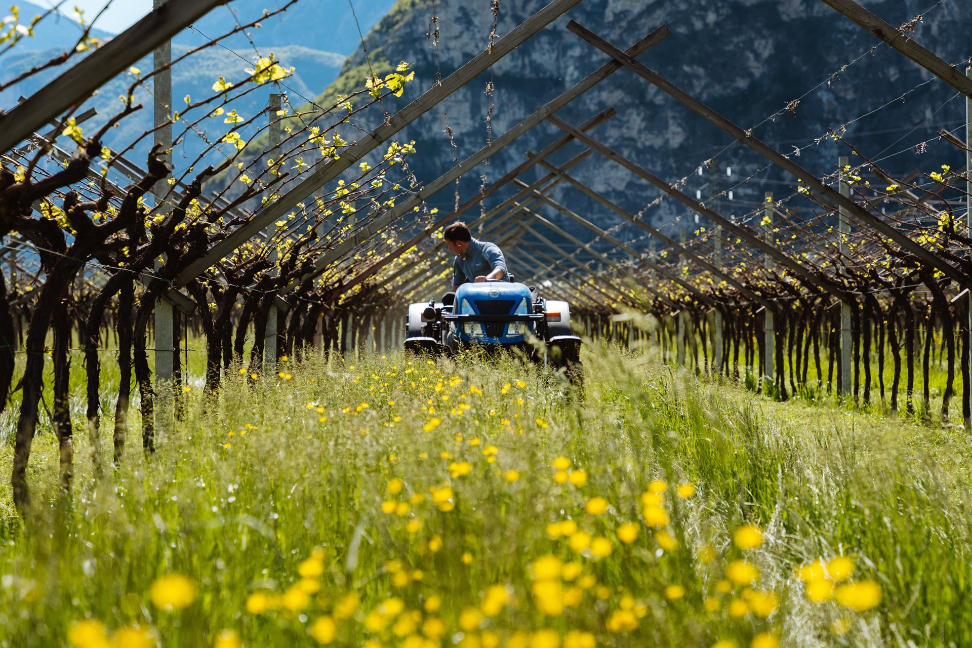 In spring, between April and May, the rows become a mosaic of flowers and lush plants, an explosion of biodiversity that enriches the soil and nourishes the vines.