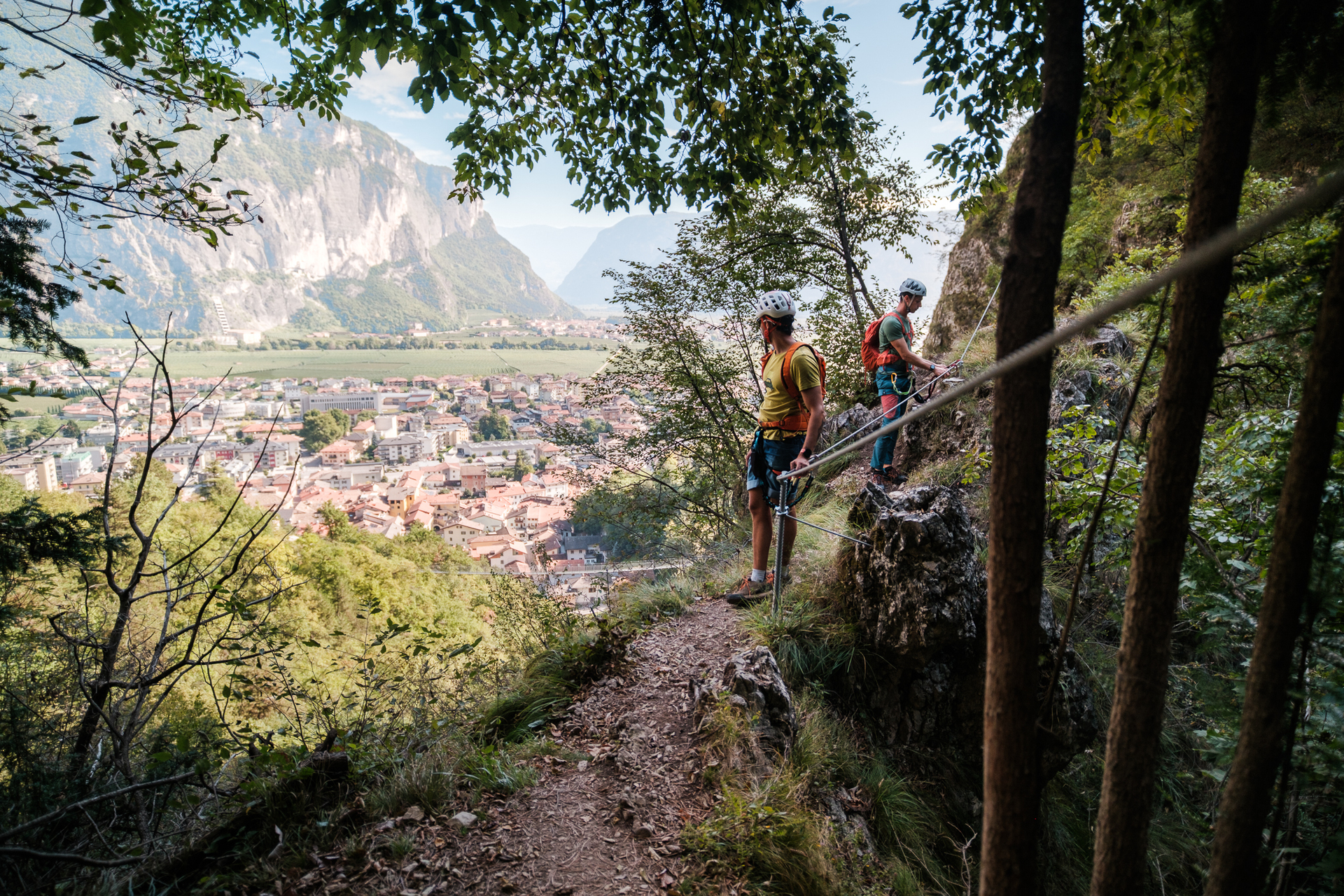 The ferrata is a short walk from Mezzolombardo, a strategic position that guarantees convenient parking and all the services at your fingertips.