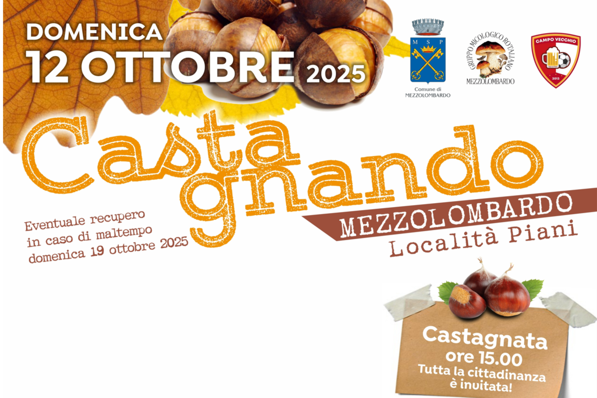 Domenica 12 ottobre torna a Mezzolombardo, in Località Piani, l’appuntamento con “Castagnando”: un evento promosso dal Comune di Mezzolombardo dedicato alla riscoperta del fascino del bosco di castagni che incornicia il territorio.